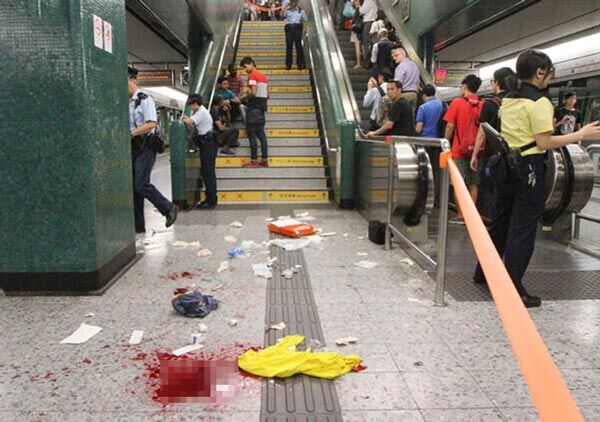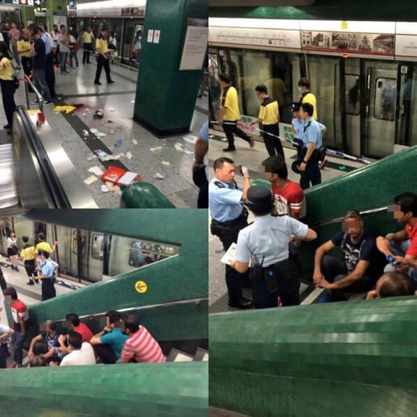当时是有数名刀手在在站台持刀追砍另一帮男子。因为案发时值下班繁忙时间,站台满满是乘客,他们都急步远离现场。
