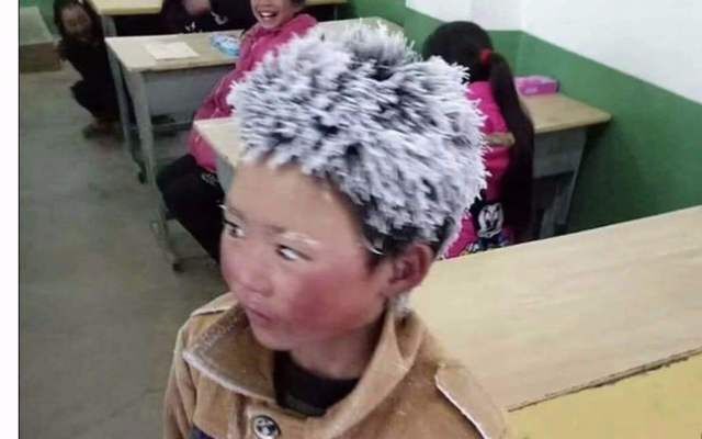 2018年1月,一位三年级小学生为了赶期末考试,在零下9摄氏度的冬日清晨步行4公里多山路到学校。在教室里,他被拍下一张头顶冰花、脸蛋通红、衣着单薄的照片。这张照片后来在网络上广泛流传。