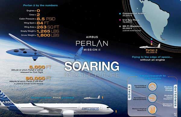 这架滑翔机被命名为Perlan II,设计师研发它的目的就在于利用平流层中的气流,能够让它不断上升。本次试飞位于俄勒冈州的雷德蒙机场,是它的处女 航。Perlan II滑翔机是一种经过加压设计的滑翔机,能够让飞行员抵达数万米高空中保持座舱压力,同时机组也会带上氧气面罩,类似于宇航员在太空中 使用的呼吸装置。