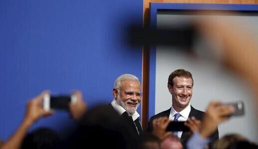 当地时间9月27日,美国加州门洛帕克,印度总理莫迪访问Facebook总部,与扎克伯格会面并发表演讲。