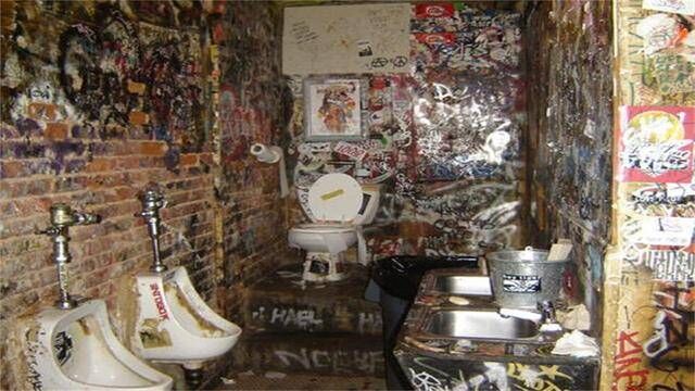 今天我们就来说几个世界最脏的景点,你想看看吗?最奇葩的酒吧,它被称为CBGB酒吧,老板将它建在的厕所上,墙上到处都是涂鸦,环境那是一个差,这个地方是专门为那些玩音乐的人准备的,据老板说,只有在这样的环境下,才能创造出好音乐,真实常人无法理解的想法。