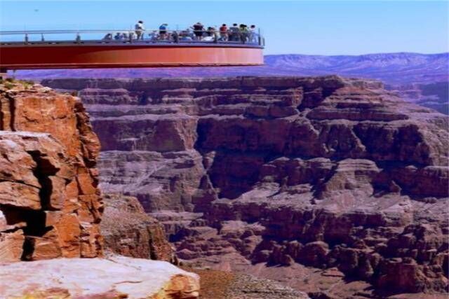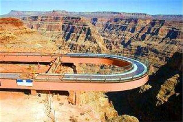 在美国有一座马蹄形玻璃天桥,坐落在美国著名的天然奇观大峡谷上,是一个非常大的U形玻璃平台,距离地面有1200多米,漫步在这座高空玻璃桥上可以欣赏整个大峡谷的雄壮景观。这座天桥也被人们称为最令人叹为观止的“人行天桥”。
