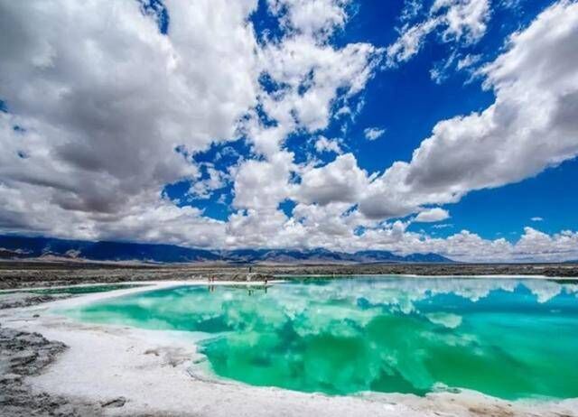 大柴旦湖位于柴达木盆地东北边缘一盆地里面,位于戈壁滩上的湖泊宛如天上遗落的明珠一般,在太阳的照射下显现出不同的颜色,从空中望去就像是一颗颗翡翠镶嵌在此处,所以它还亲切地被人们称作“翡翠湖”,湖水呈现出一种迷人的绿色,让人流连忘返。