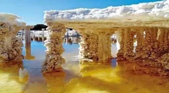 其实,往青海的柴达木深处,还有一片更大的盐湖——察尔汗盐湖。它是中国最大的盐湖。在蒙古语中,“察尔汗”意为“盐的世界”。