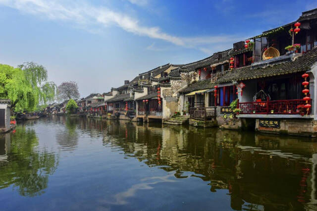 西塘古镇中,街道纵横交错,临水而建的房屋,青石板铺就了,一条条清净小路。这些就是游人梦想中,小桥流水人家的样子。步入古镇,游人仿佛回到了曾经的那个年代。这里的居民日出而作,日落而息,带给了西塘古镇一丝安宁气质。