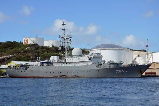 图为俄罗斯维克托.列昂诺夫号情报收集船