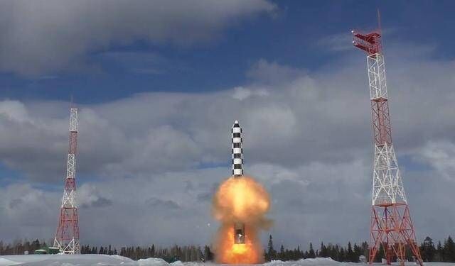 图为萨尔马特洲际弹道导弹试射