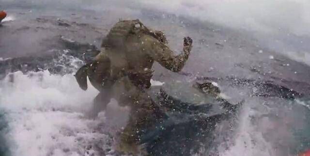 图为跳上贩毒潜艇迫使他们投降的缉毒人员