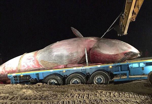 据英国《每日邮报》报道,在北爱尔兰伦敦德里的斯图尔特港,一条长达43英尺(约13.1米)、重达20吨的大须鲸被人发现搁浅沙滩。这是8年来,在爱尔兰岛发现的第三条搁浅鲸鱼。