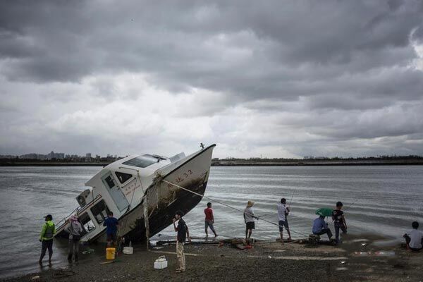 坡头区南三渡口,一艘客轮在台风中翻沉。