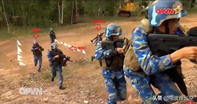 11月22日,越南国防频道放出了一段越南海军第1海区所属的第147陆战旅演练山地进攻的镜头,其中部分画面刚好记录了该旅一个10人制陆战班的完整武器配置情况。由于该旅是目前越军的重点建设部队,所以其轻武器和单兵作战装具都已经全部更换为进口以色列装备。而从电视画面看,越军对陆战队步兵班的火力是相当重视的,不仅配了一具火箭筒和一支内格夫班用轻机枪,而且居然还配了3具GL-40型枪挂40mm榴弹发射器。