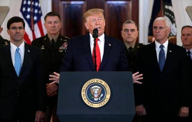 1月8日,伊朗导弹袭击了美军在伊拉克的两处基地,其中一处是阿萨德空军基地,美军确认至少有十枚导弹击中了该基地,但美军没有任何伤亡,基地的设施只遭到很小的损失。在得到相关的损伤评估之后,美国总统特朗普1月9日上千11点发表全国讲话,表示,美军很强大,但我们不一定会使用。同时,他还意外地宣称,美国愿意与伊朗拥抱和平。