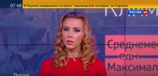 俄罗斯国家广播电视台的气象预报节目近日增加了新花样。当俄军援助叙利亚行动公开化后,该台在气象预报里加入了叙利亚当地天气报道,美女主持人在描述时还淡定的说“叙利亚当前的天气非常适合开展我们的空袭行动”。有网友评论“真是充满战斗民族气息的天气预报”