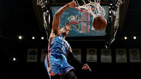 雷霆:拉塞尔-韦斯特布鲁克、安德烈-罗伯特森、凯文-杜兰特、塞吉-伊巴卡、伊内斯-坎特