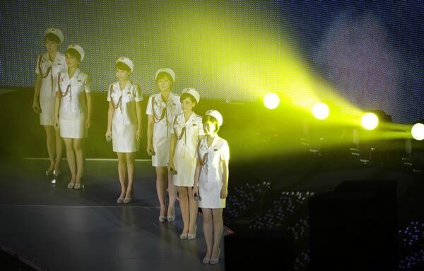10月11日,朝鲜著名的“牡丹峰乐团”在平壤举办演唱会,庆祝朝鲜执政的劳动党建党70周年。“牡丹峰乐团”全部由青年女孩组成,是朝鲜最著名的乐团组合。