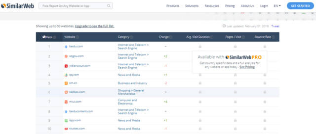 SimilarWeb成立初期时是一款浏览器的插件,根据人们浏览的网页推荐其他类似的页面。2013年公司转型,利用收集的数据,编制了一个流量的图谱,直观地体现了人们访问哪些网页以及为什么会访问这些网页。