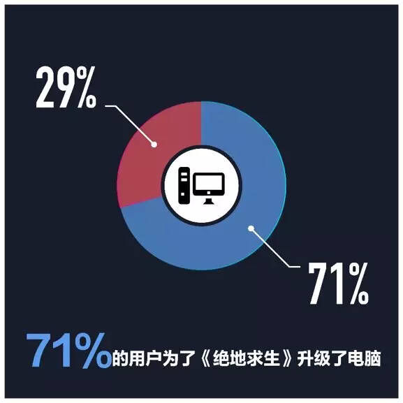 为了追求更好的电竞体验,很多电竞用户都会在硬件如电脑、手机等下足功夫。去年大热的PC端“吃鸡”类电竞《绝地求生》,就带动了一波消费热,七成以上的“吃鸡”玩家升级了电脑。