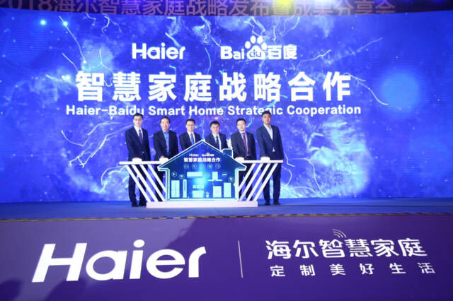 3月7日,在2018海尔智慧家庭战略发布暨成果分享会上,百度与海尔结成同盟,双方将依托百度领先的ABC(AI人工智能,Big Data大数据,Cloud Computing云计算)+IoT技术,基于海尔在智慧家庭领域的创新优势,共同推动百度云天工和海尔U+等在技术和产品上深度合作,探索智慧家庭新商业模式,共同构建智慧生活的内容与营销生态。