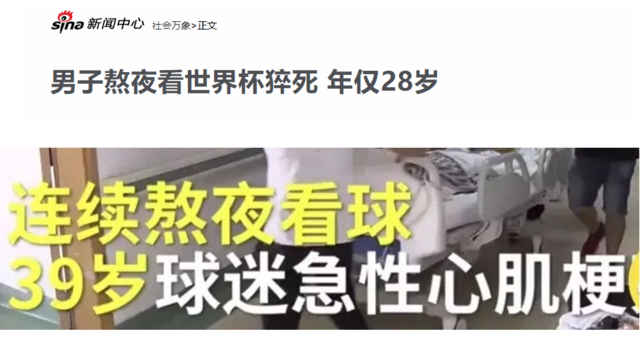 连续几日,华子看到多起因为熬夜看球而引起突发脑卒中、心肌梗死的报道。有些人经过抢救活了过来,而有些人则离开了这个世界。其中不乏只有二、三十岁的青壮年,华子不敢想象他们的家人将要经历什么样的悲痛。世界杯每4年就会重演,而生命只有一次。华子提醒大家,为了那些爱着自己的人,请爱惜自己的身体。