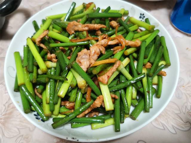 这是一道普通的家常菜,用蒜苔和猪肉丝炒制而成,是一道最常见的家常快手小炒,下饭下酒都不错,肉丝不柴,蒜苔颜色不黄,翠绿脆嫩还入味,其实越是家常菜越难做好,有人喜欢干煸的,有人喜欢焯水的,做法都不一样。