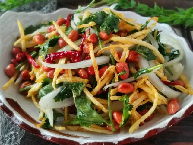 今天分享一道凉拌菜的做法,适合中秋家宴吃,是把土豆,洋葱,香菜,花生米一起拌制而成,很多人都没吃过,这是一道东北家常凉拌菜,菜名叫:三丝爆豆,味道酸中带甜,又很香香脆脆的口感,大人小孩都喜欢吃,学会这个凉拌菜,百吃不厌,比肉菜受欢迎,也是一道下酒佳肴,你也学会它,中秋团圆宴露一手,做给家人吃,下面分享下做法: