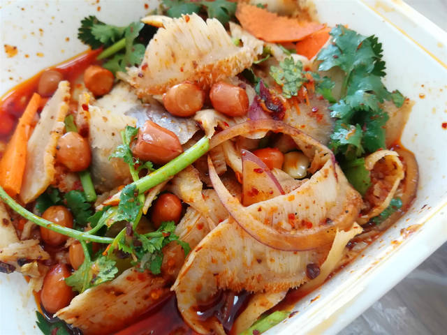 凉拌牛肚,这道是凉拌菜,用牛肚拌的,也有叫毛肚的,香辣开胃,越嚼越香,是一道受欢迎的下酒菜
