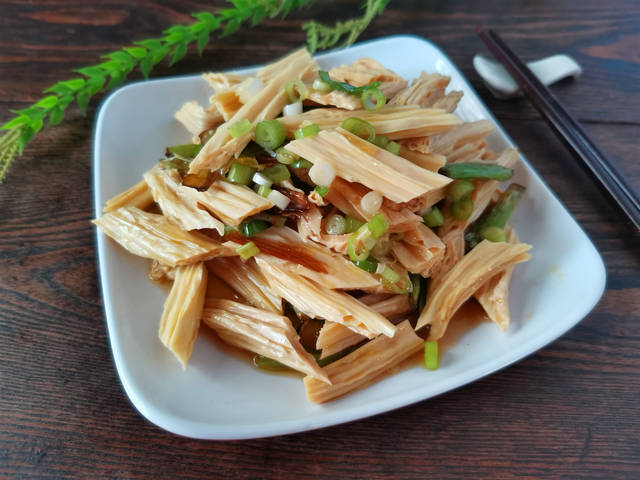 腐竹的做法很多,今天分享一道适合夏季吃的腐竹做法,用葱油和腐竹一起拌,味道清香, 增进食欲,吃着清淡味美,营养丰富,做法也简单,只需简单几步就能做好,下面分享下做法: