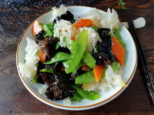 夏季天气炎热,凉拌菜特别受欢迎,推荐一道夏季凉拌小菜,这道菜肴由荷兰豆、黑木耳、银耳、胡萝卜一起拌制而成,荷兰豆嫩荚质脆清香,营养价值很高,富含维生素C,荷兰豆与一般蔬菜有所不同,所含的止杈酸、赤霉素和植物凝素等物质,具有抗菌消炎,增强新陈代谢的功能。在荷兰豆含有较为丰富的膳食纤维,可以防止便秘,有清肠作用。