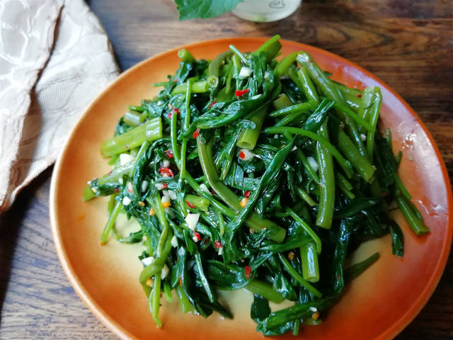 空心菜学名叫 蕹菜,又叫菜蓊、蓊菜,藤藤菜,通菜。是大家非常喜爱的蔬菜,空心菜中的叶绿素有“绿色精灵”之称,可洁齿防龋除口臭,健美皮肤,堪称美容佳品。空心菜的粗纤维素的含量较丰富,具有促进肠蠕动、通便解毒作用。夏季经常吃它,可以防暑解热、凉血排毒的好处。很多时候我们大家都会把空心菜用来炒着吃,今天换种方法做空心菜,把空心菜凉拌着吃,比炒的滑嫩、爽口,天热吃它清凉味美,防暑解热。做法也特别简单,只需简单几步就能做好,下面分享下做法: