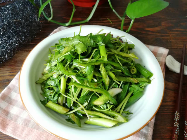老虎菜是东北比较有特色的凉拌菜,口感清爽脆嫩,主要是食材就是辣椒,香菜和葱共同切丝凉拌而成的。具有很好的开胃增加食欲,促进消化的作用,虽然是一道普通的菜肴,但是味道和受欢迎程度却是很高,在东北菜里是做法最简单的一道菜,也特下饭,辣椒选用本地产的“辣妹子”尖椒,吃一口,辣的嘴里嘶嘶哈哈的,脑门上也会流下汗珠来。辣椒强烈的香辣味能刺激唾液和胃液的分泌,增加食欲,辣的过瘾,吃着下饭,辣味里夹杂着香菜的清香,辛辣刺激的葱的味道,几种味道融合在一起,成就了这道东北家常菜的独特味道,没有吃过的人体会不到。