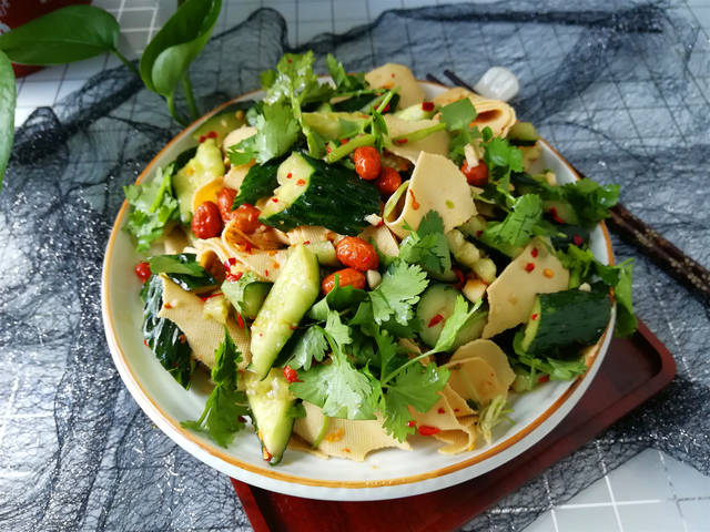 这道菜肴做法简单,只需把黄瓜拍一拍,豆皮撕一撕,加上调料拌制,一盘清凉爽口的凉拌菜就做好了,给肉都不换,比炒菜好吃百倍,每次都会拌上一大盆,吃上一口甜酸、微辣、清香味儿在口腔中散发开来,醒胃又养生,吃的一点都不剩,你也学会这道菜肴,做给家人吃吧,下面分享下做法: