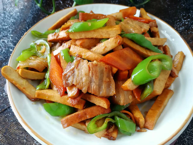 香干是一种豆制品,去湘菜馆吃饭,会经常点一份小炒香干,特别好吃下饭,香干可制作多种菜肴,可冷拌,可热炒,可油炸,可烤制,香干在北方并不常见,去超市看见有卖香干的就买了一份,香干和五花肉,尖椒是绝配,经过一起炒制,五花肉肥而不腻,尖椒入味,香干绵软,鲜香可口,是一道家常下饭菜,如果没有食欲,就做一盘这个菜,米饭做少了不够吃,下面分享下做法: