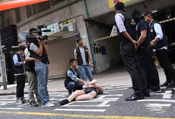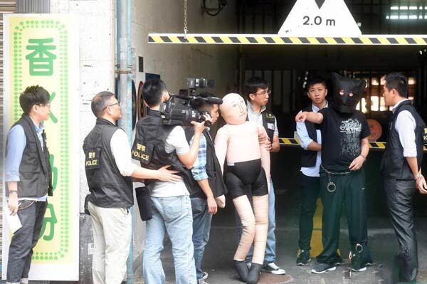 10月21日,警方在现场放置假人模型,让疑犯模拟案发经过。