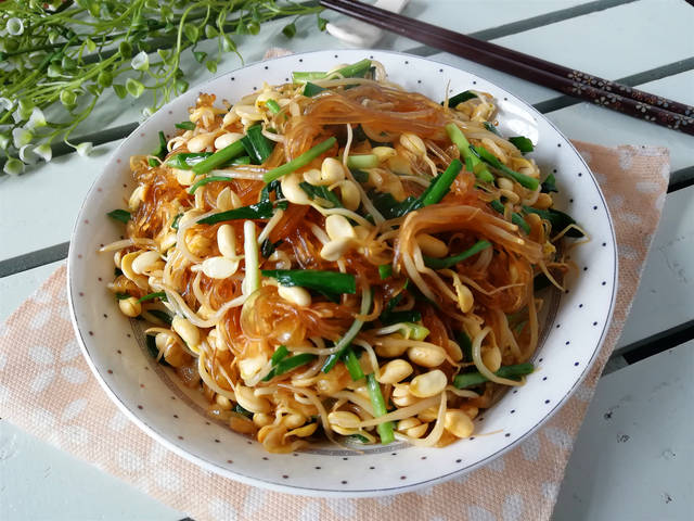 所以春季家里要经常吃些黄豆芽是有很多好处的,怎样把黄豆芽做的好吃?今天分享的做法,是把黄豆芽和粉丝,韭菜一起炒,不用放肉,春季的韭菜非常鲜嫩,散发独特的辛香气味,有助于疏调肝气,增进食欲,增强消化功能。炒出的菜肴清香脆嫩,营养还丰富,特别适合春分节气吃,健胃养肝,你也做给家人吃,下面分享下这道菜肴的做法和技巧。