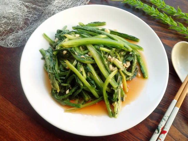材料:油麦菜500克、油盐适量、大蒜3瓣、蚝油1汤匙、