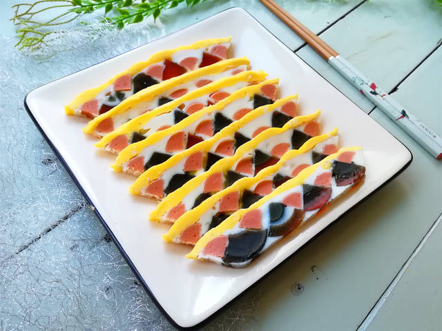 教你做黄金三色蛋,做法简单颜值高,家里来客人做冷菜拼盘真不错,这道菜肴是由鸡蛋,松花蛋和火腿肠一起蒸制而成,做起来超级简单,快手。在颜色搭配看着就有食欲,口感鲜嫩,特别适合做凉菜。家里来客人做一盘真不错,下面分享下这道黄金三色蛋的做法:
