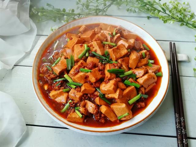 【肉末蒜苗烧豆腐】
