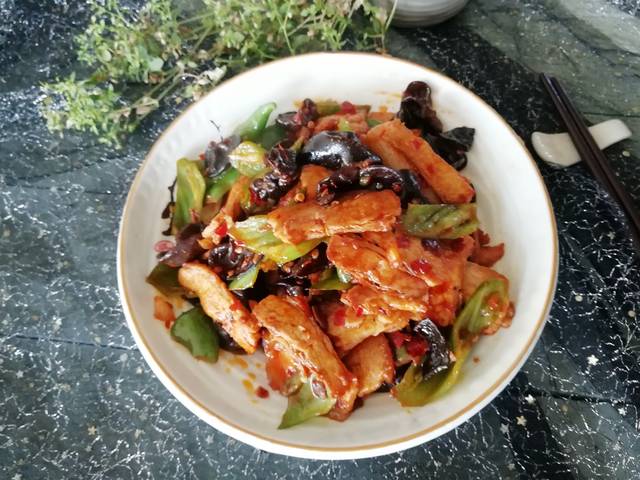 材料:五花肉500克、尖椒4个、木耳适量、油盐适量、郫县豆瓣酱1汤匙、葱1段、姜2片、大蒜2瓣、料酒1汤匙、生抽酱油1汤匙、白糖1茶匙、