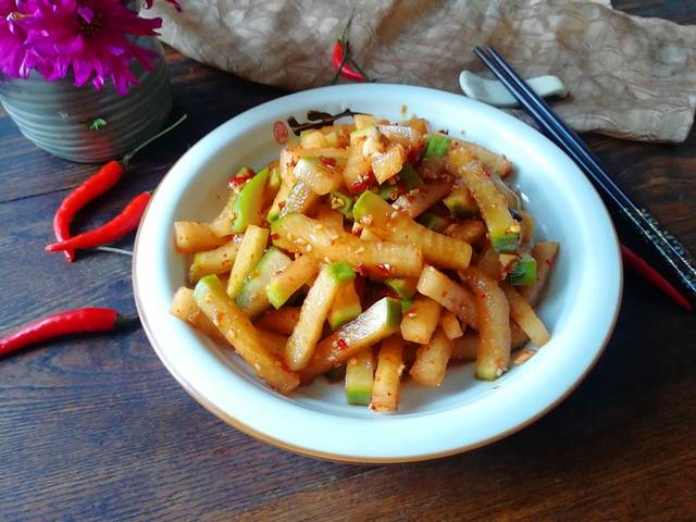 材料:青萝卜5斤、盐适量、香油2汤匙、辣椒油3汤匙、辣椒粉2汤匙、大蒜2头、姜1块、白糖2汤匙、酱油5汤匙、