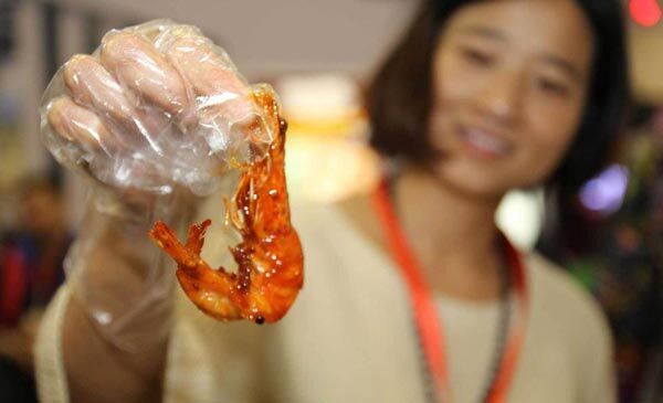 2015年10月23日,青岛吃货节上每只仅售4元的“青岛大虾”亮相。当日,青岛规模最大的美食类节庆活动2015青岛吃货节在青岛国际会展中心热辣登场,来自世界各地的数百种美食齐聚青岛。