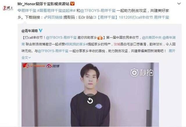 易烊千玺为湖南汝城白毛尖打call