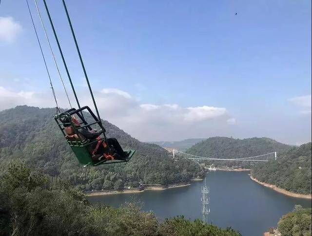 高空悬崖秋千矗立于山顶之上,临界于悬崖之边,这座建在石燕湖旅游区里的悬崖秋千不仅是湖南省长沙市目前建造的首座悬崖秋千,更能给你于180米高空中体验“命悬一线”的刺激快感!