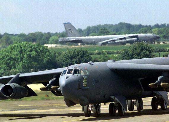 资料图:挂载JDAM联合攻击弹药的美国空军B-52远程轰炸机