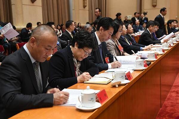 列席四次全会的国家监委特约监察员会前认真阅读会议资料(中央纪委国家监委网站 张祎鑫 摄)