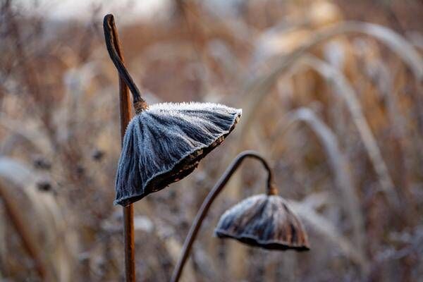 清晨,江西省上犹县梅水乡水陂村的一处荷塘中白色冰霜覆盖在枯萎的莲蓬上,寒气逼人,别有一番“迎风傲雪悄然立,缕缕寒香漾旧塘”的韵味。(江西省上犹县纪委监委 杨文国 摄)