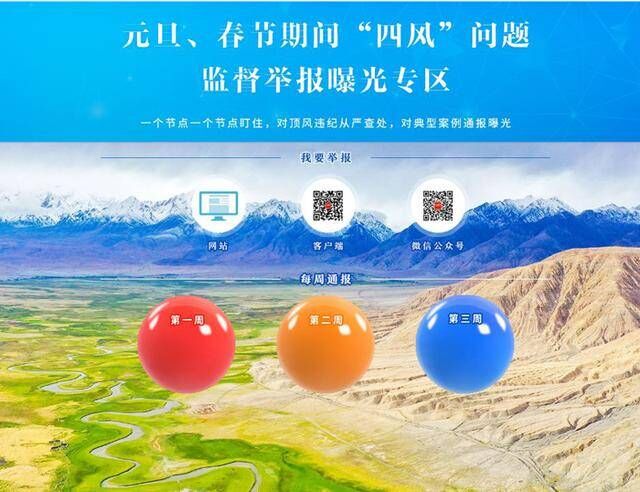 专区开设“我要举报”窗口,链接中央纪委国家监委统一举报平台,欢迎网友通过网站、手机客户端和微信公众号对节日期间“四风”问题进行举报。