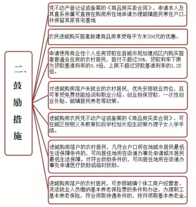 1、购房户凭不动产登记证或备案的《商品房买卖合同》,申请本人及其直系亲属可直接在购房所在地申请办理城镇居民常住户口,并且保留其原有宅基地,依法享有宅基地使用权。符合条件的可继续享受上级农村家庭土地承包经营权、耕地地力保护补贴、农村集体收益分成等惠农政策。