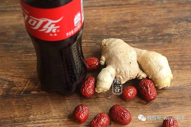 【材料】:可乐 1瓶,生姜 适量,红枣 8颗