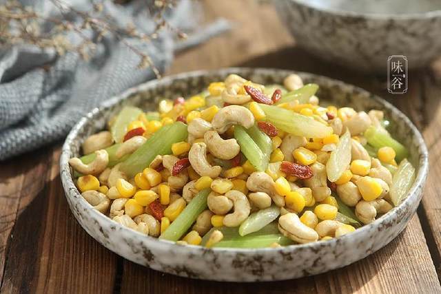广东人大大小小的酒席上都会出现这一道好彩头的菜——金玉满堂,其实家常的说法就是腰果玉米丁,各个地方的材料虽有所差别,但主要原料都离不开腰果这种坚果,腰果顾名思义就是长的像腰子,它香飘四溢,清脆可口,跟玉米粒、西芹菜或胡萝卜丁一起炒,吃起来既有清甜又酥脆,从颜色搭配到食材的口感都非常丰富,所以才会有金玉满堂的叫法。
