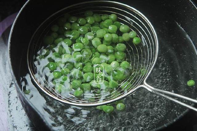 【做法】:1、豌豆入沸水焯熟后,捞起来沥干待用;